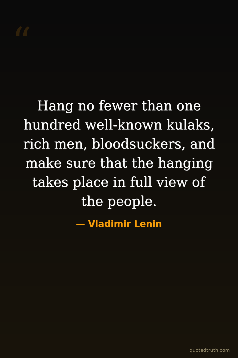 Hang no fewer than one hundred well-known kulaks, rich men, bloodsuckers, and make sure that the hanging takes place in full view of the people.