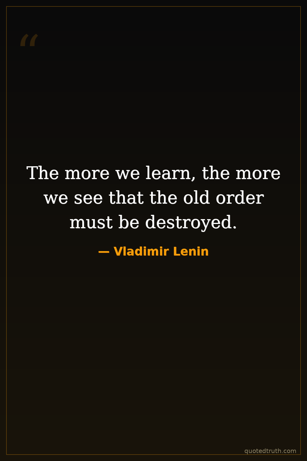 The more we learn, the more we see that the old order must be destroyed.