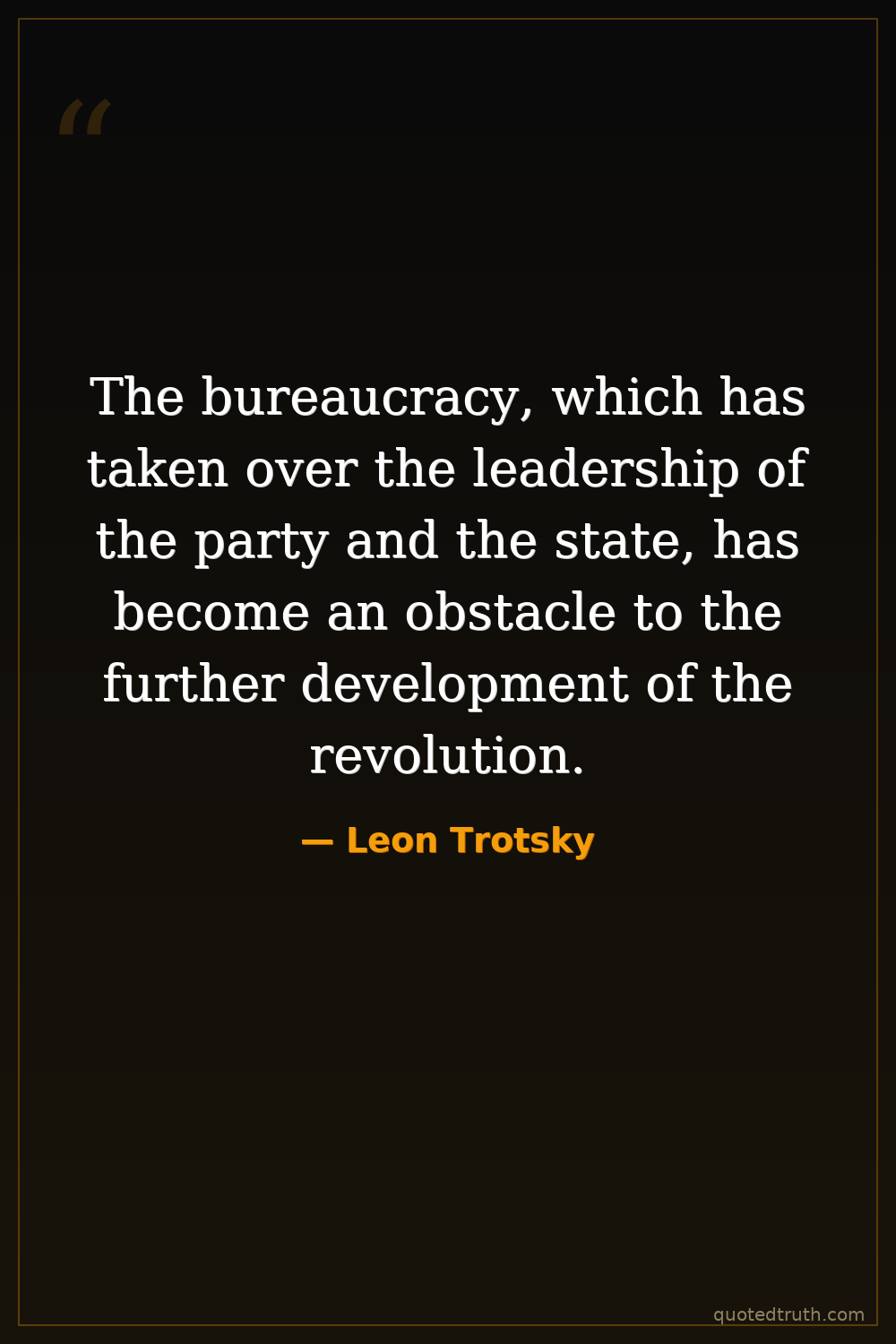 The bureaucracy, which has taken over the leadership of the party and the state, has become an obstacle to the further development of the revolution.