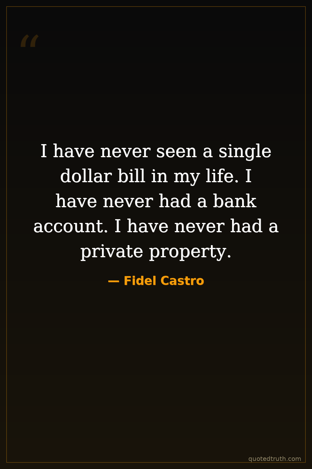 I have never seen a single dollar bill in my life. I have never had a bank account. I have never had a private property.