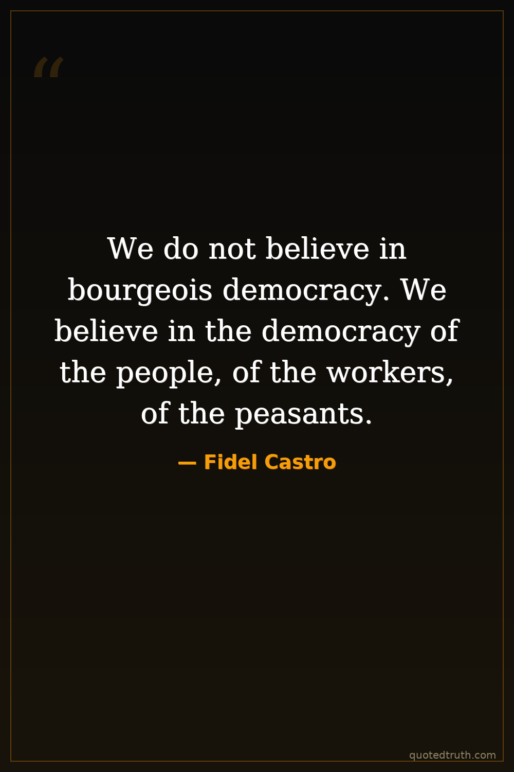 We do not believe in bourgeois democracy. We believe in the democracy of the people, of the workers, of the peasants.