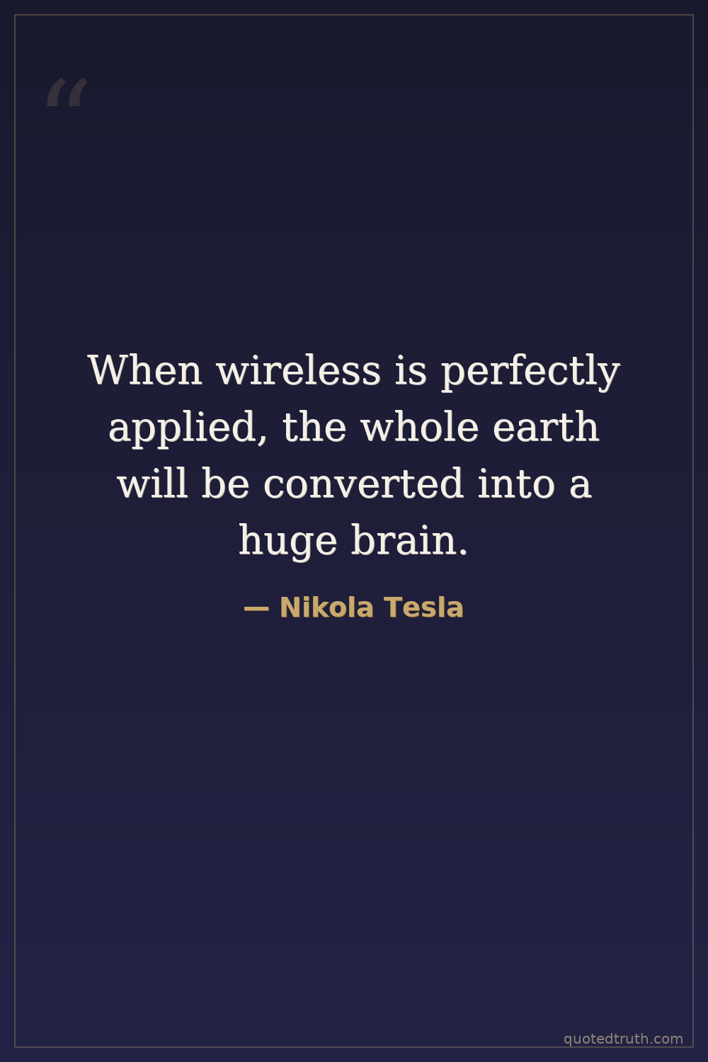 When wireless is perfectly applied, the whole earth will be converted into a huge brain.