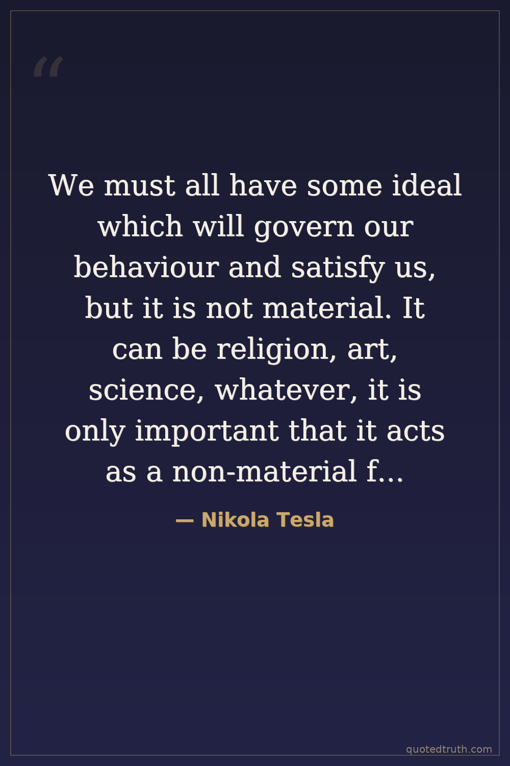 We must all have some ideal which will govern our behaviour and satisfy us, but it is not material. It can be religion, art, science, whatever, it is only important that it acts as a non-material force.