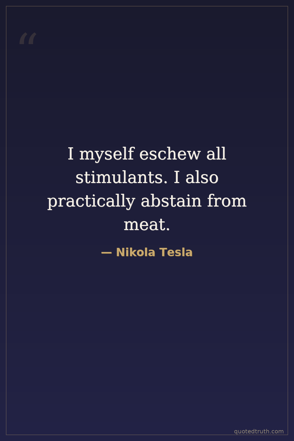 I myself eschew all stimulants. I also practically abstain from meat.