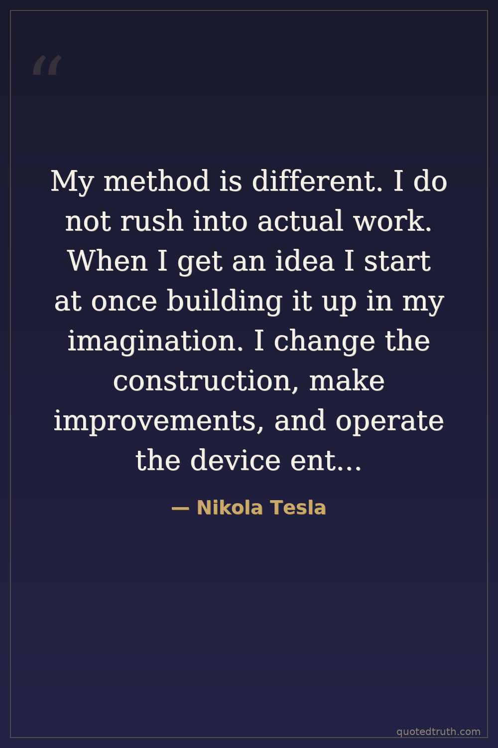 My method is different. I do not rush into actual work. When I get an idea I start at once building it up in my imagination. I change the construction, make improvements, and operate the device entirely in my mind.