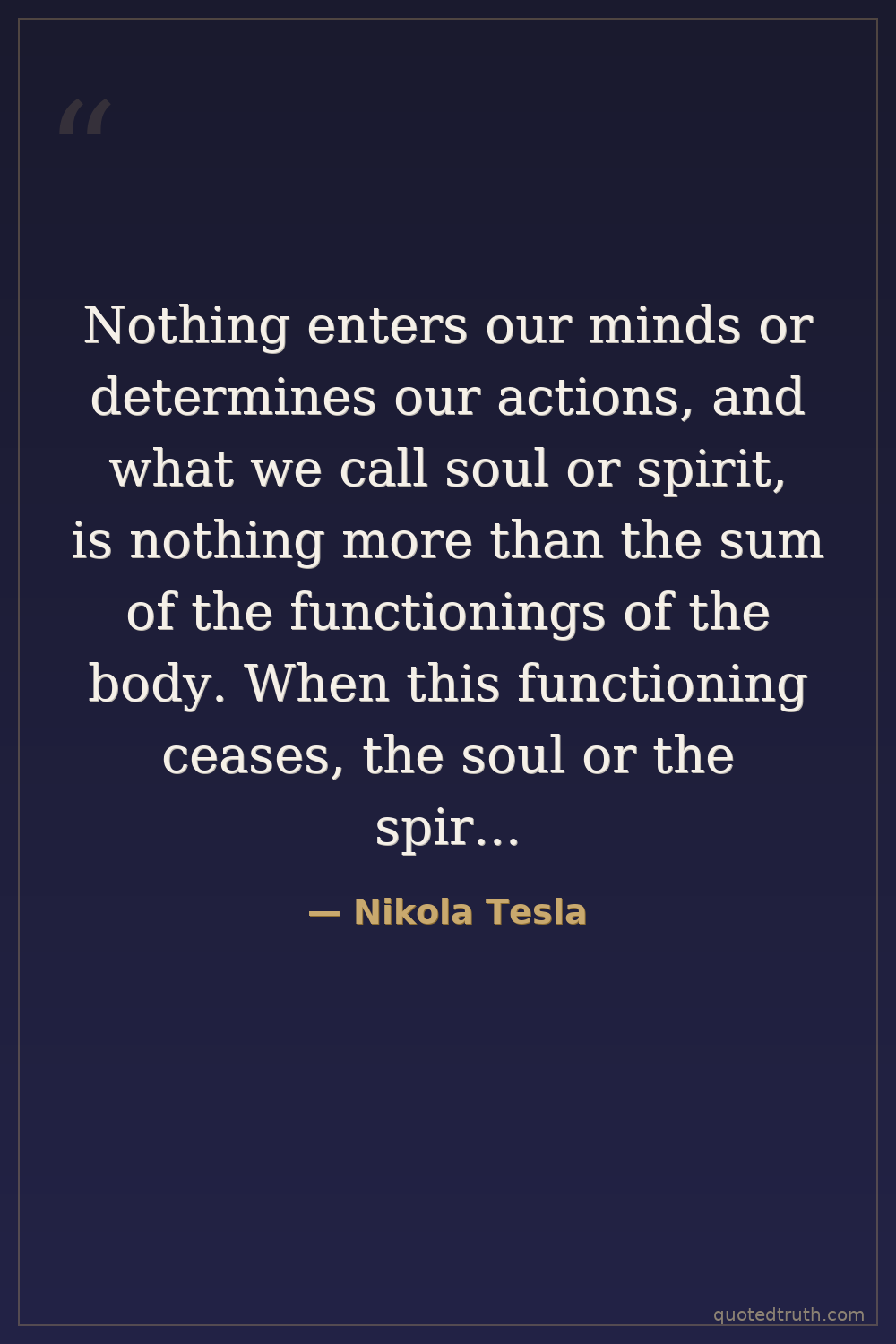 Nothing enters our minds or determines our actions, and what we call soul or spirit, is nothing more than the sum of the functionings of the body. When this functioning ceases, the soul or the spirit also ceases.
