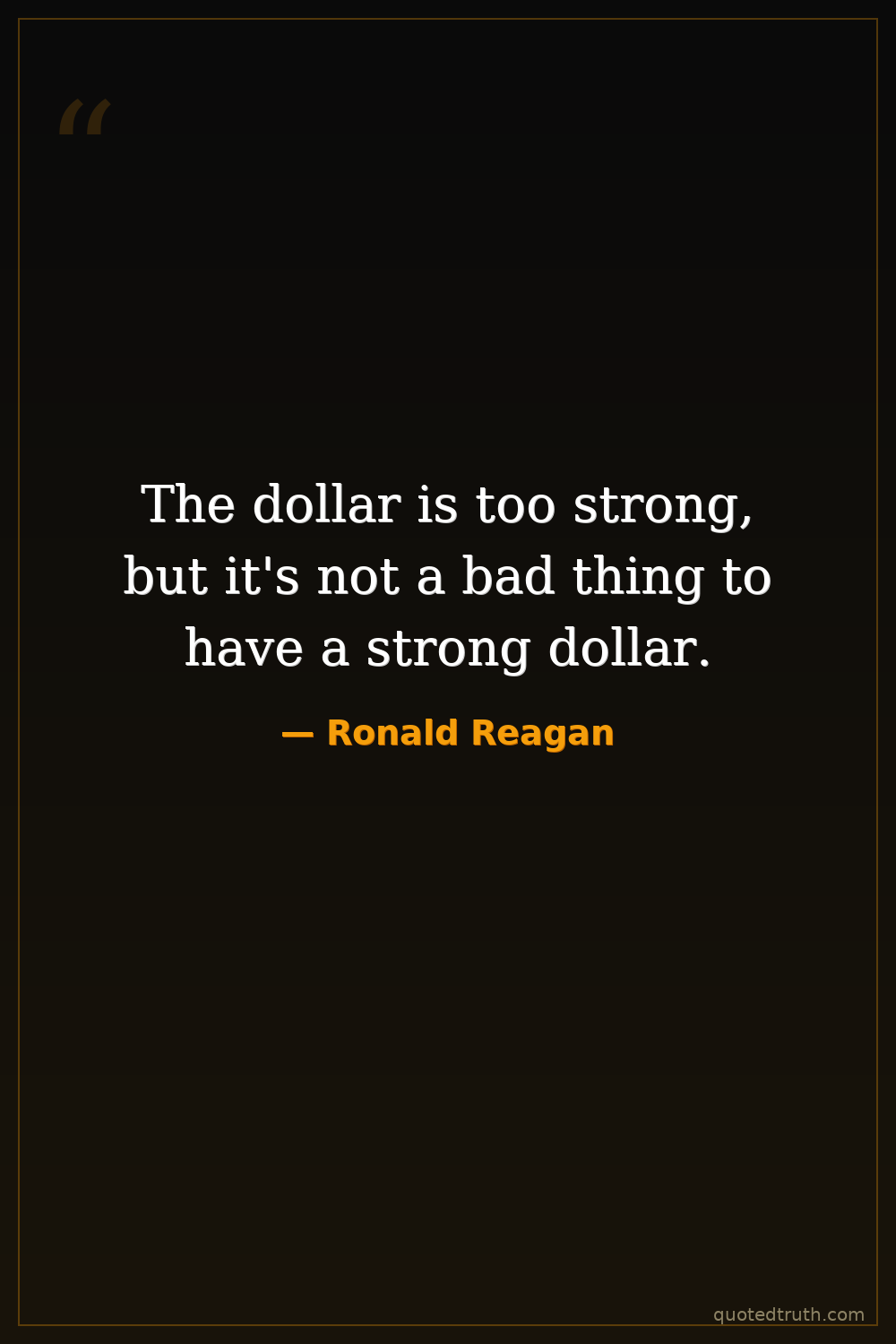 The dollar is too strong, but it's not a bad thing to have a strong dollar.
