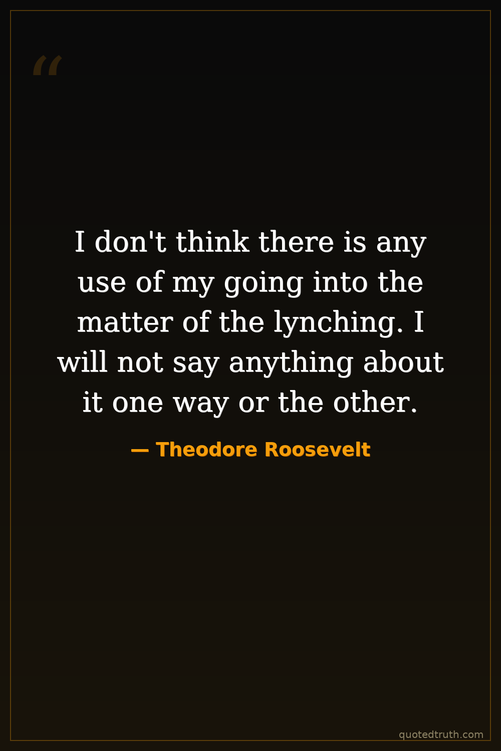 I don't think there is any use of my going into the matter of the lynching. I will not say anything about it one way or the other.