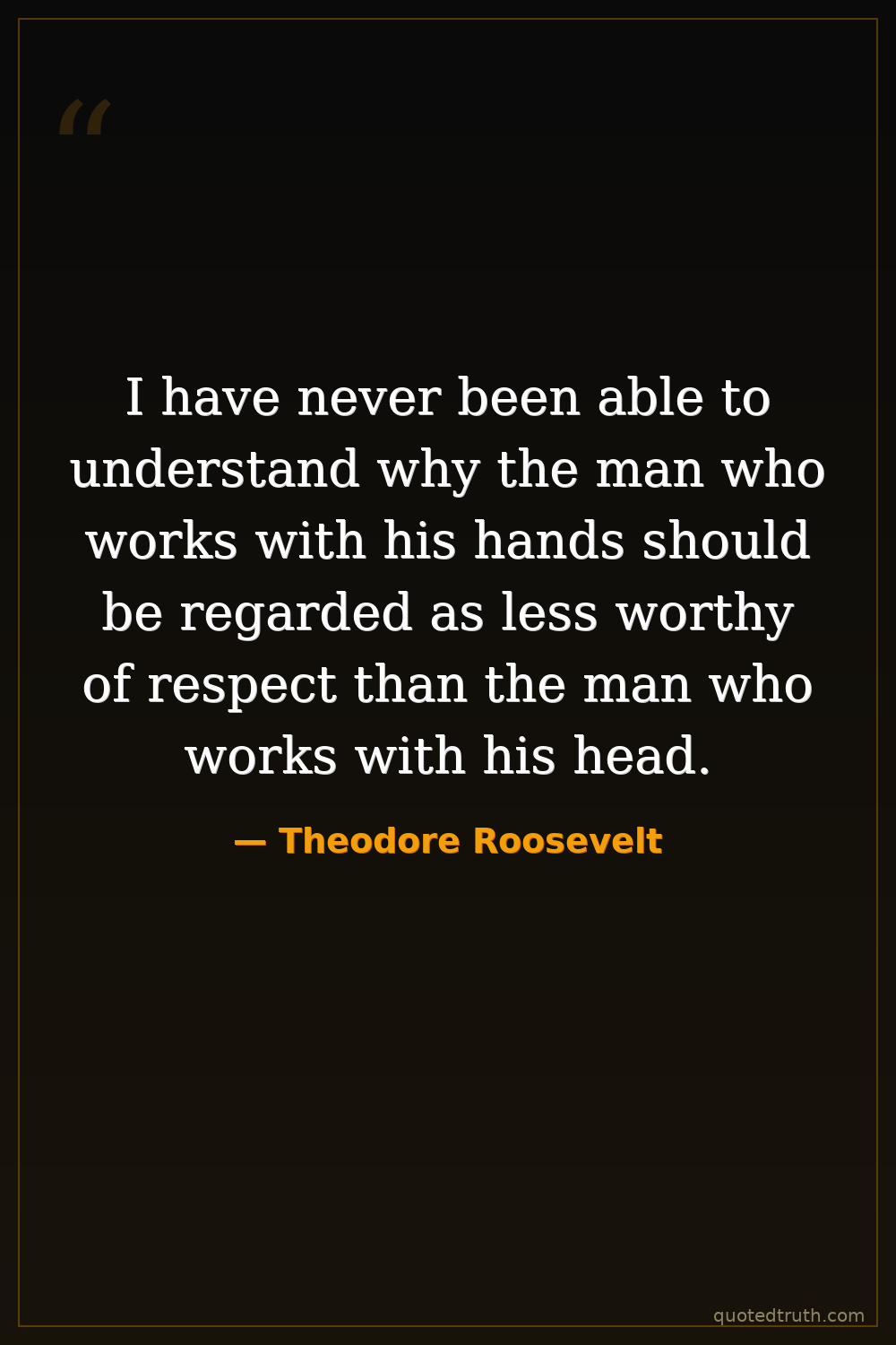 I have never been able to understand why the man who works with his hands should be regarded as less worthy of respect than the man who works with his head.