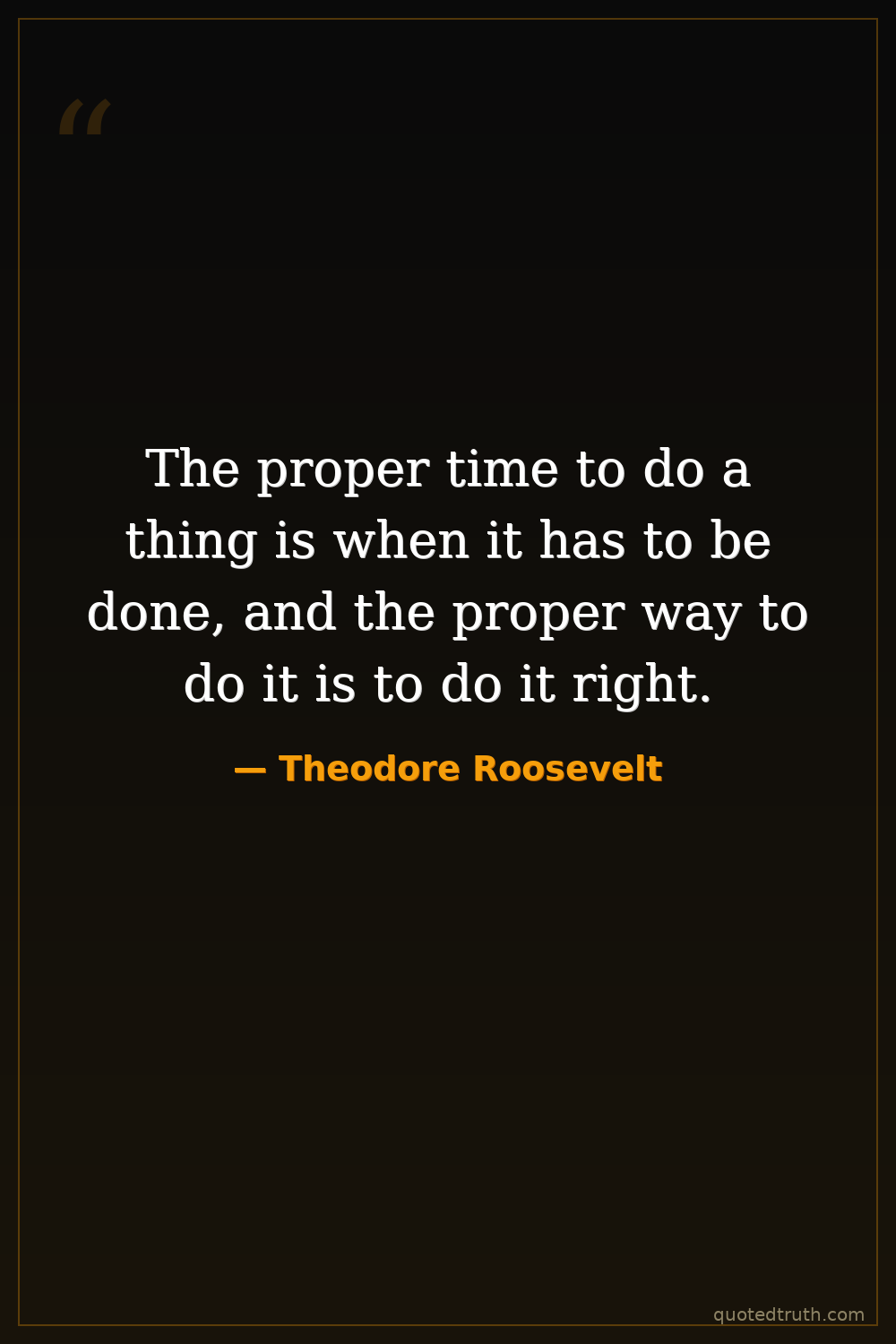 The proper time to do a thing is when it has to be done, and the proper way to do it is to do it right.