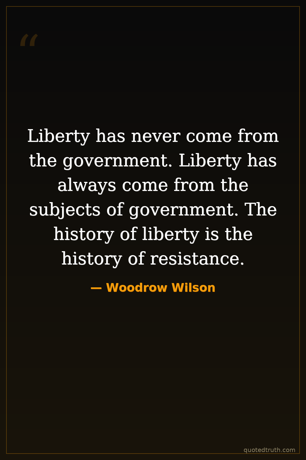 Liberty has never come from the government. Liberty has always come from the subjects of government. The history of liberty is the history of resistance.