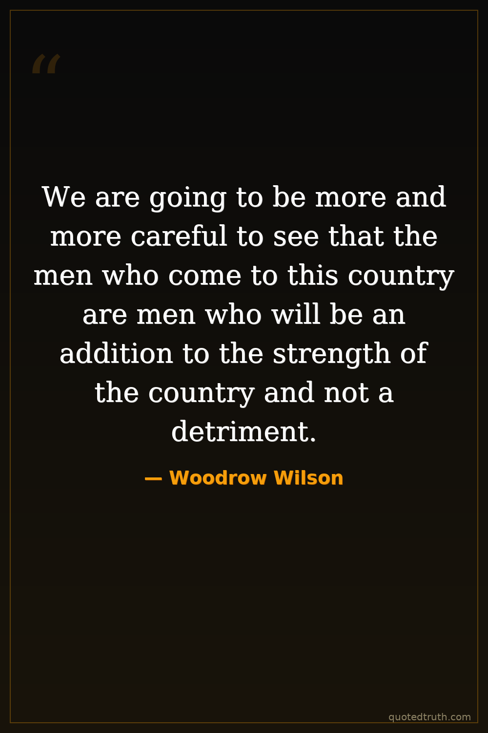 We are going to be more and more careful to see that the men who come to this country are men who will be an addition to the strength of the country and not a detriment.