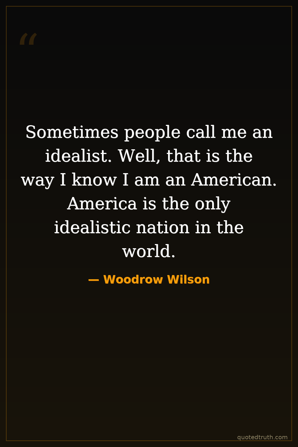 Sometimes people call me an idealist. Well, that is the way I know I am an American. America is the only idealistic nation in the world.
