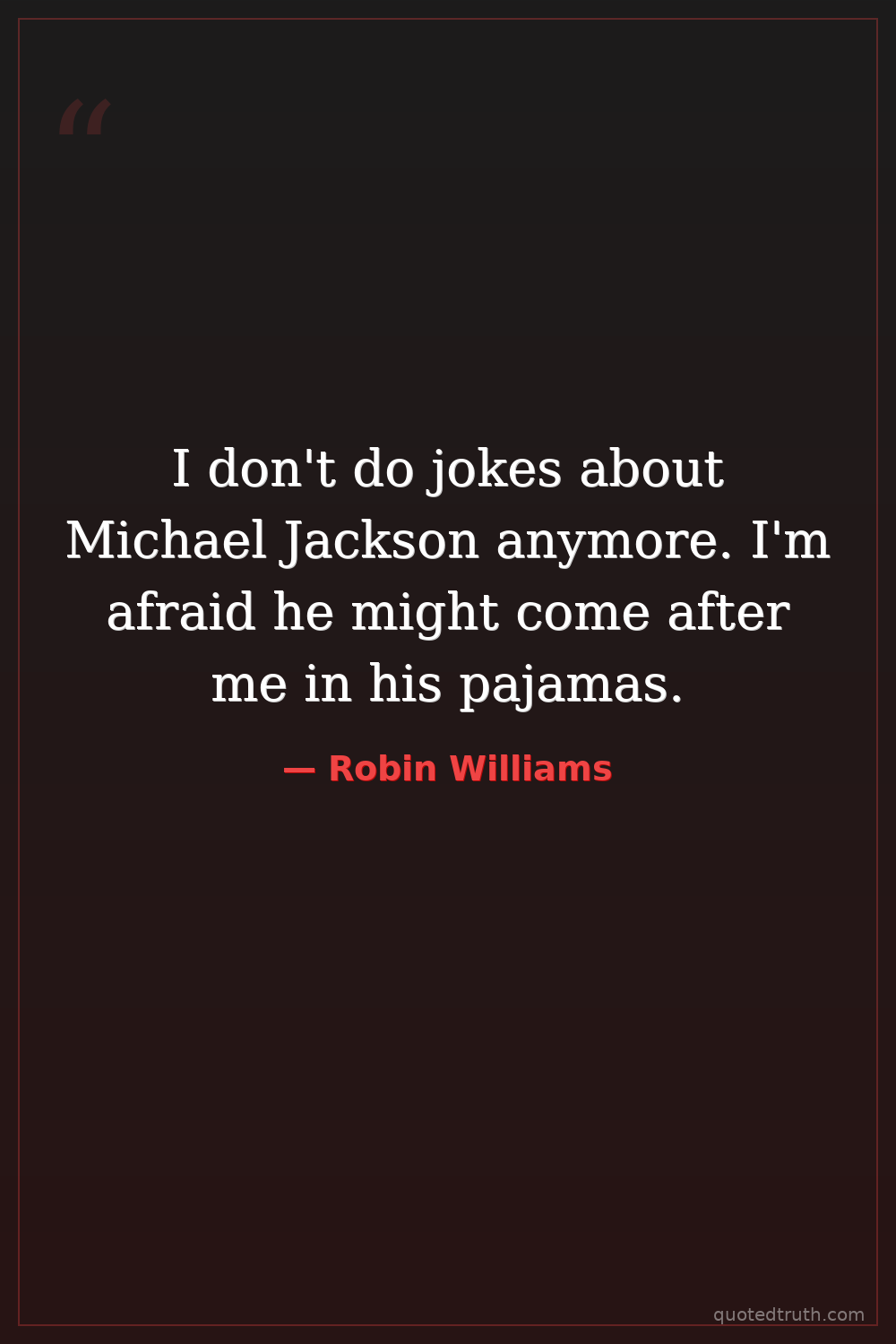 I don't do jokes about Michael Jackson anymore. I'm afraid he might come after me in his pajamas.
