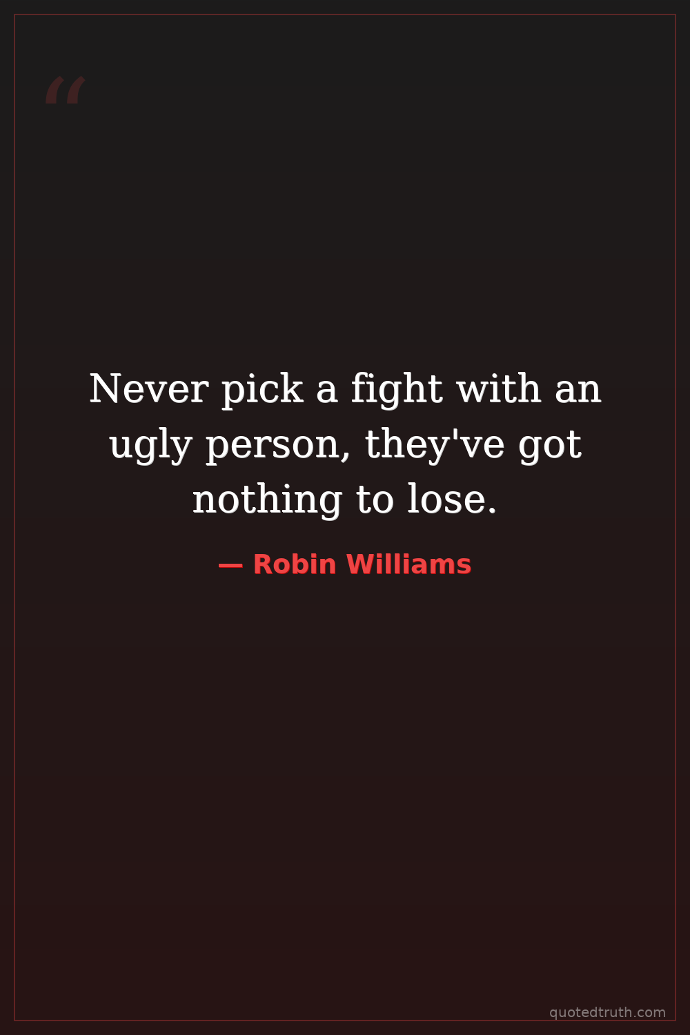 Never pick a fight with an ugly person, they've got nothing to lose.