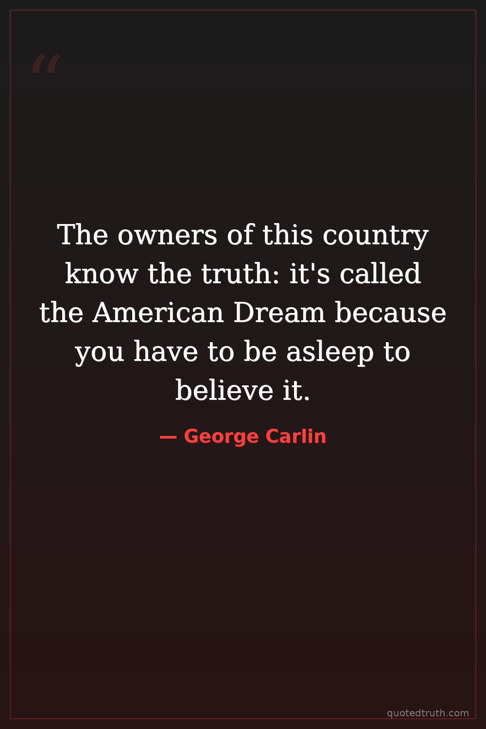 The owners of this country know the truth: it's called the American Dream because you have to be asleep to believe it.