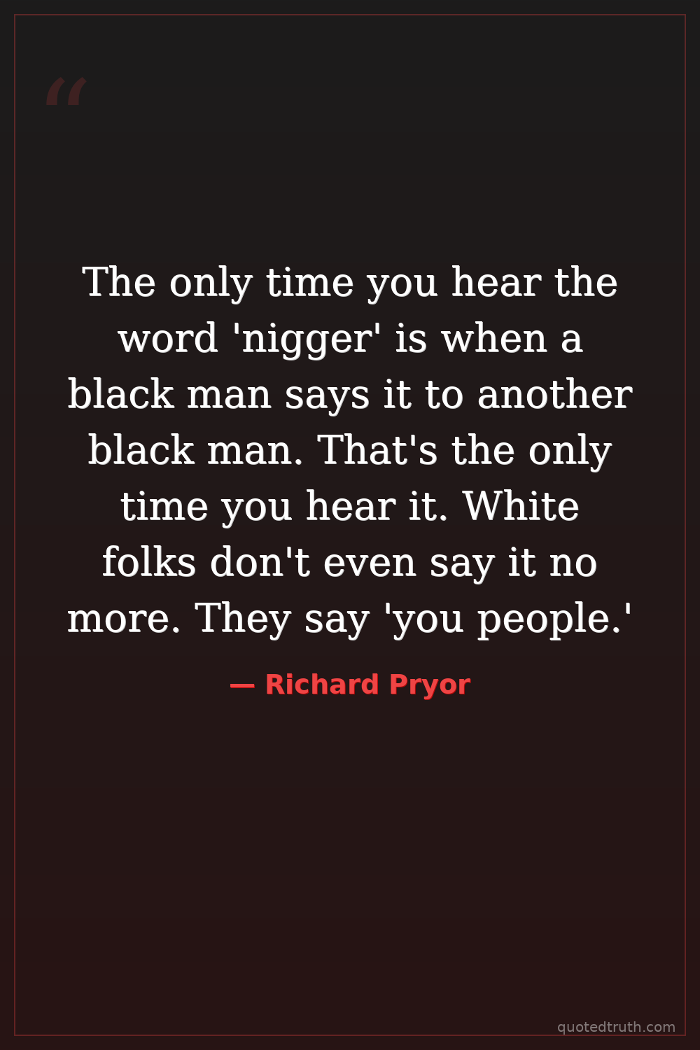 The only time you hear the word 'nigger' is when a black man says it to another black man. That's the only time you hear it. White folks don't even say it no more. They say 'you people.'