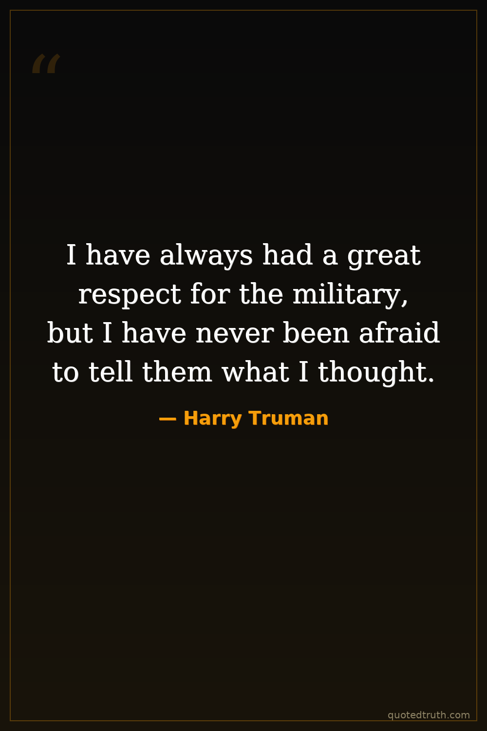 I have always had a great respect for the military, but I have never been afraid to tell them what I thought.