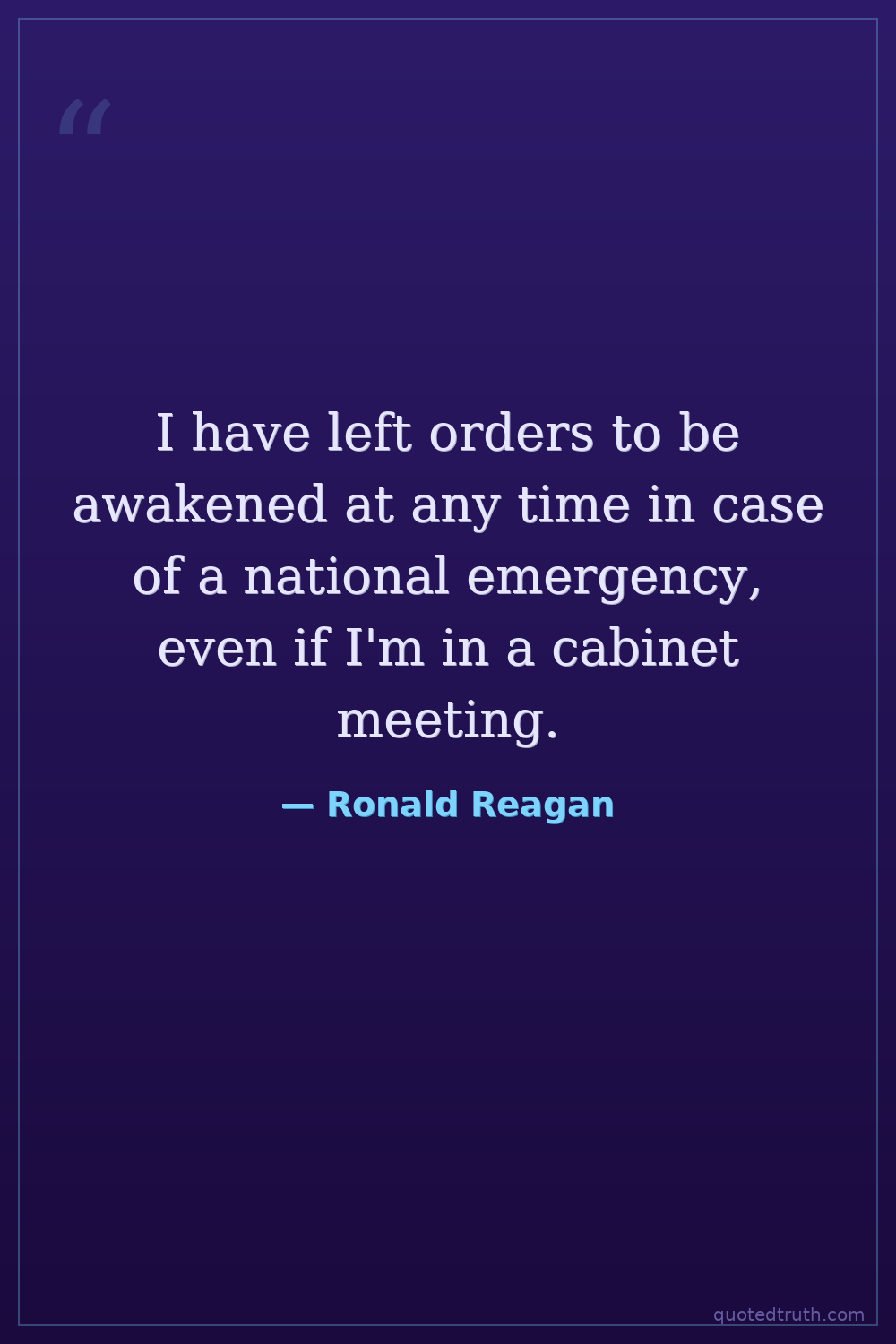 I have left orders to be awakened at any time in case of a national emergency, even if I'm in a cabinet meeting.
