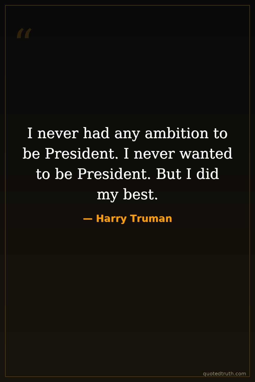 I never had any ambition to be President. I never wanted to be President. But I did my best.