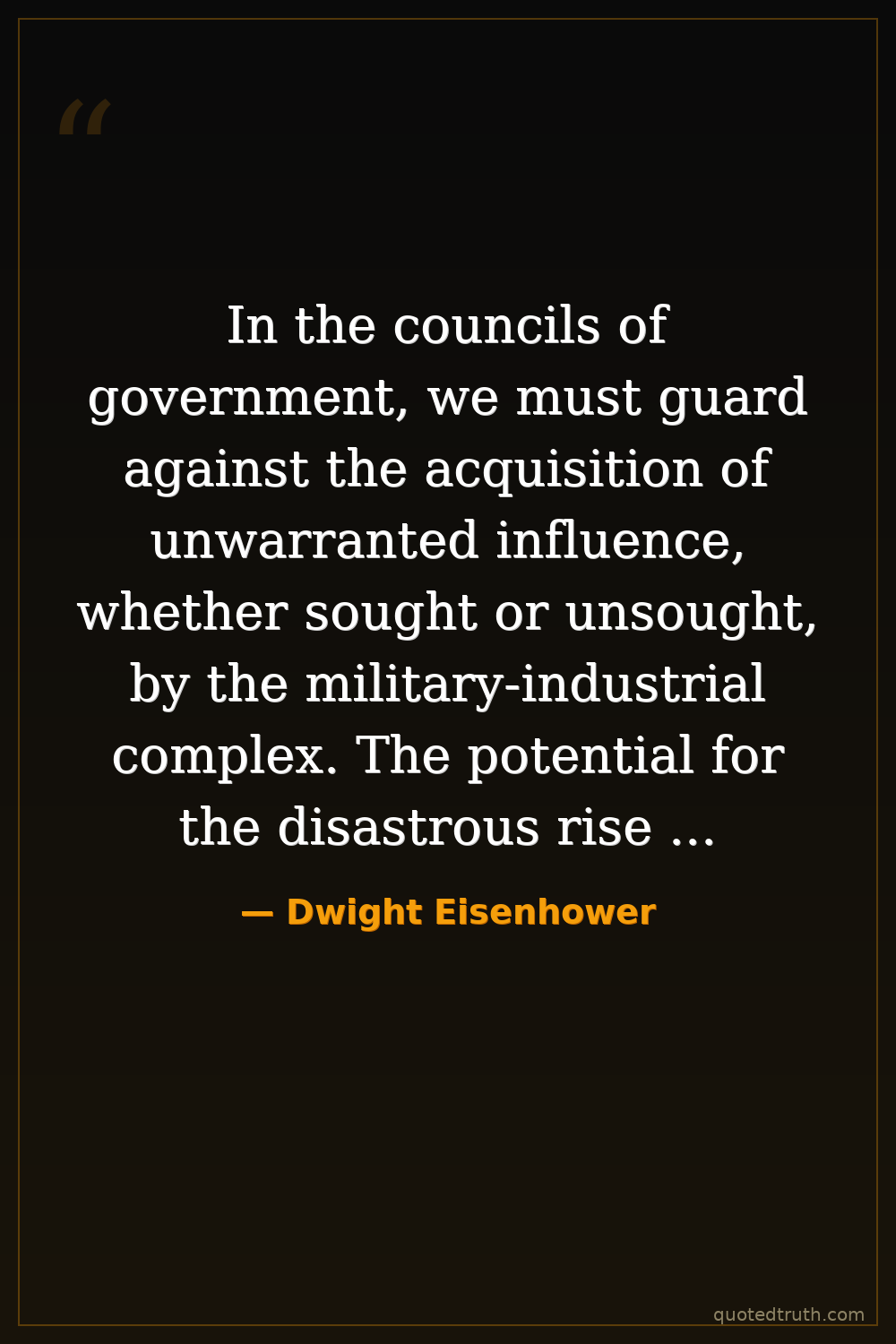 In the councils of government, we must guard against the acquisition of unwarranted influence, whether sought or unsought, by the military-industrial complex. The potential for the disastrous rise of misplaced power exists and will persist.