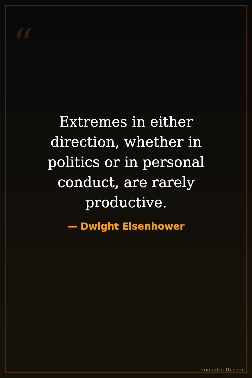 Extremes in either direction, whether in politics or in personal conduct, are rarely productive.