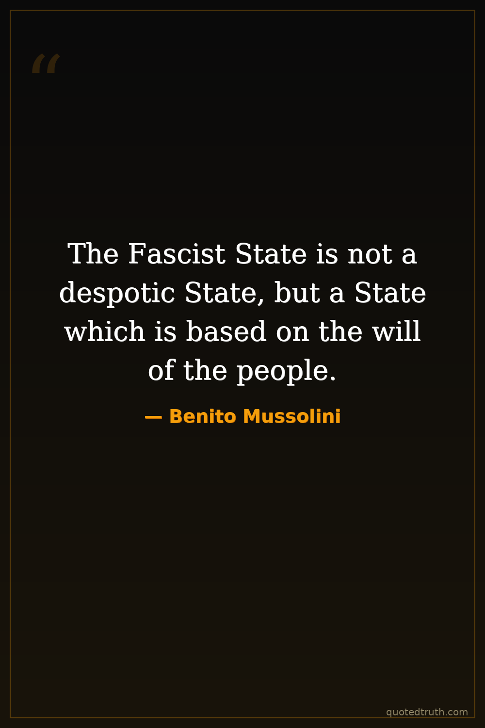 The Fascist State is not a despotic State, but a State which is based on the will of the people.