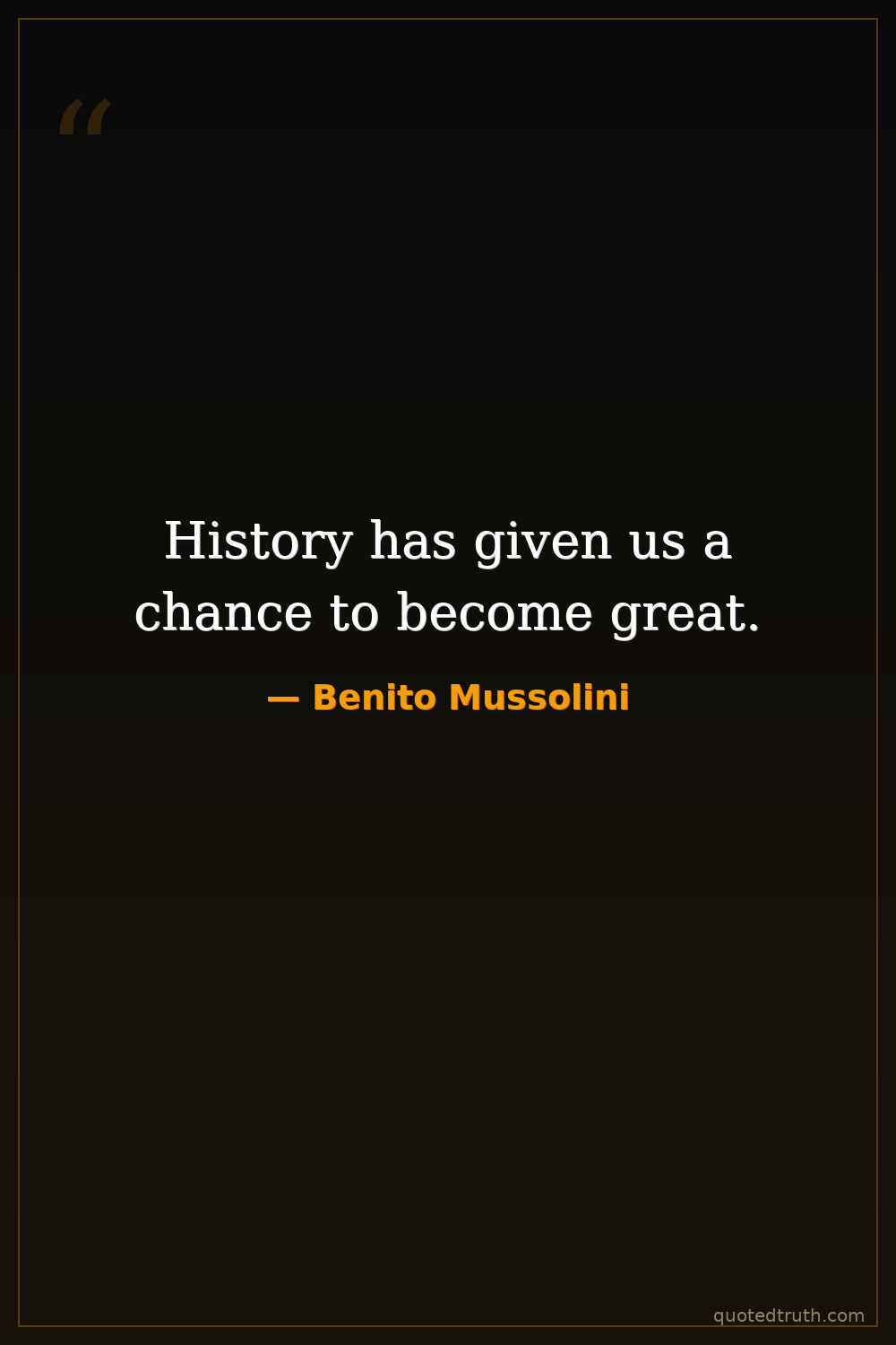Controversial"Yes, a dictator can be loved. Provided that the masses fear him at the same time. The crowd love strong men. The crowd is like a woman."