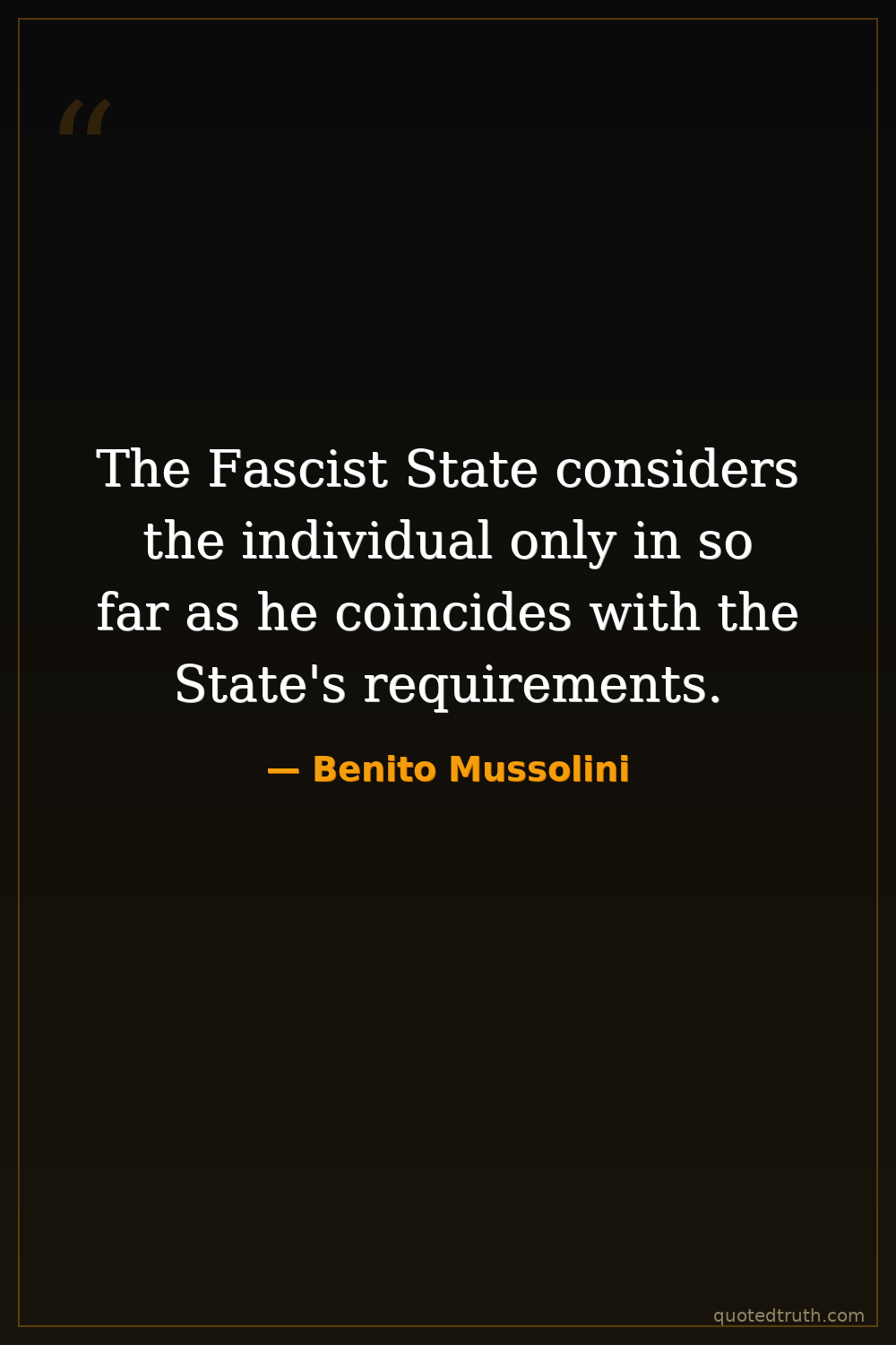 The Fascist State considers the individual only in so far as he coincides with the State's requirements.
