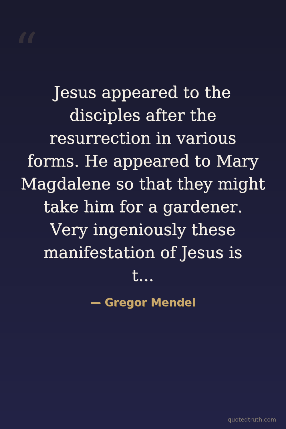 Jesus appeared to the disciples after the resurrection in various forms. He appeared to Mary Magdalene so that they might take him for a gardener. Very ingeniously these manifestation of Jesus is to our minds difficult to penetrate. (He appears) as a gardener. The gardener plants seedlings in prepared soil.
