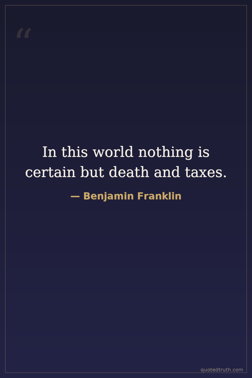 In this world nothing is certain but death and taxes.