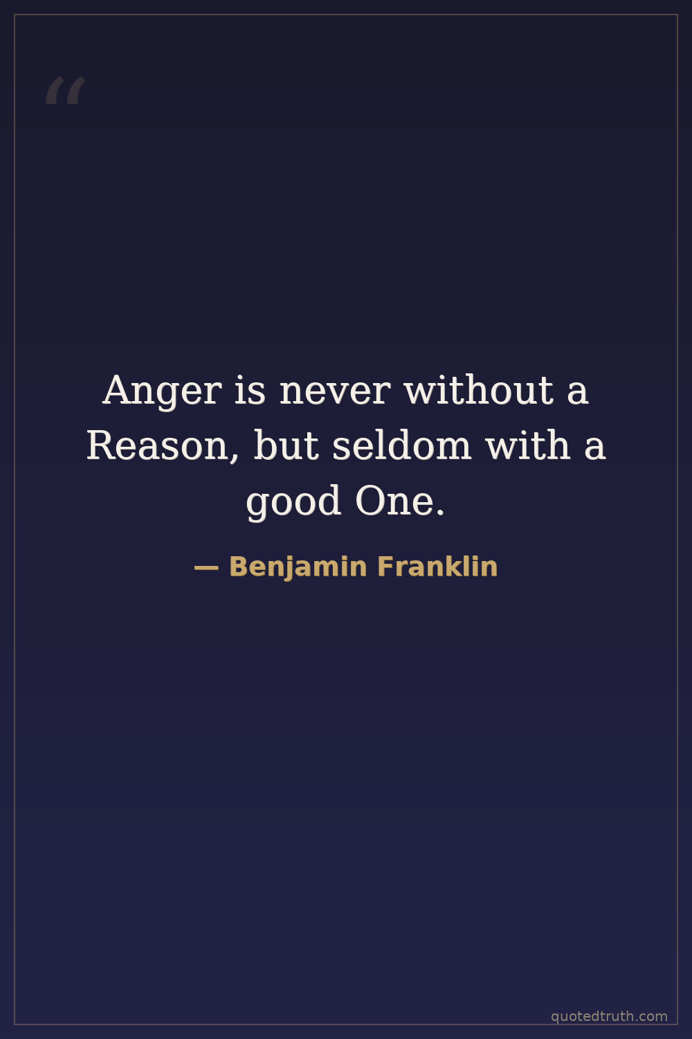 Anger is never without a Reason, but seldom with a good One.