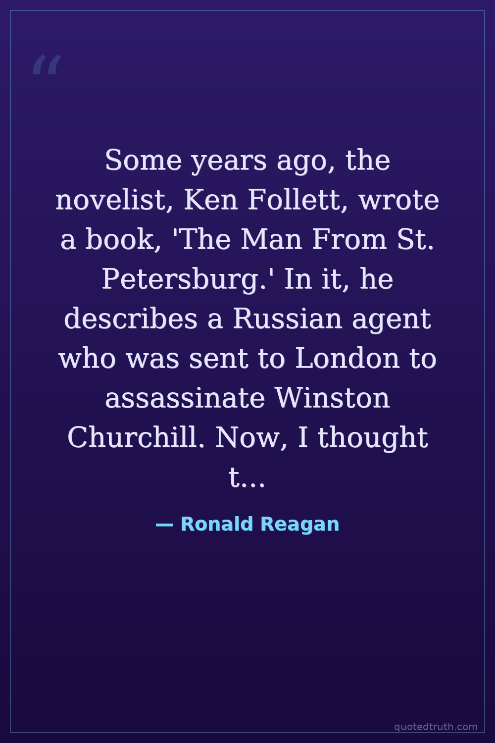 Some years ago, the novelist, Ken Follett, wrote a book, 'The Man From St. Petersburg.' In it, he describes a Russian agent who was sent to London to assassinate Winston Churchill. Now, I thought that was a pretty good story, but then I realized, if they really wanted to get Churchill, they would have sent him to Hollywood.