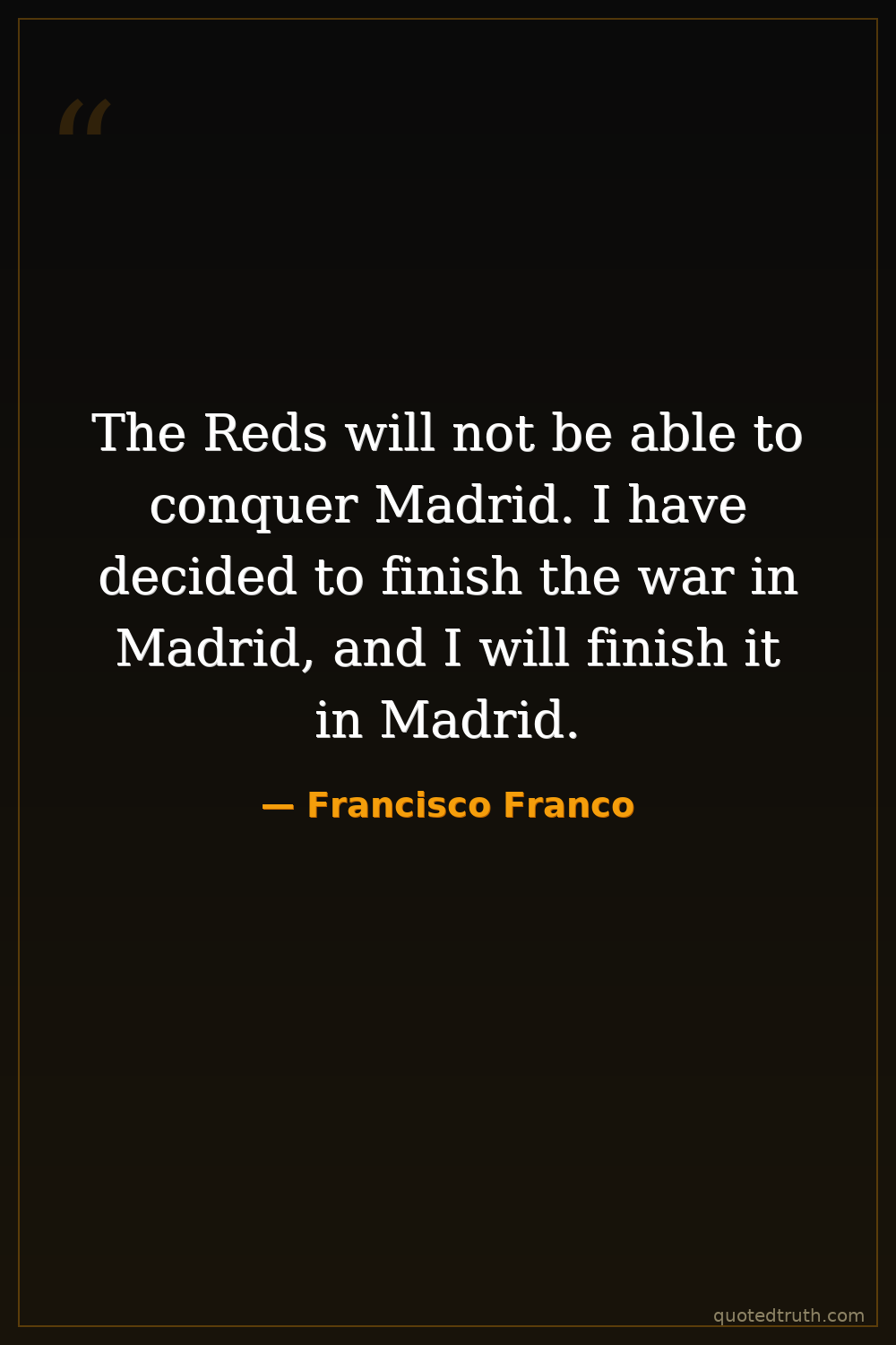 The Reds will not be able to conquer Madrid. I have decided to finish the war in Madrid, and I will finish it in Madrid.