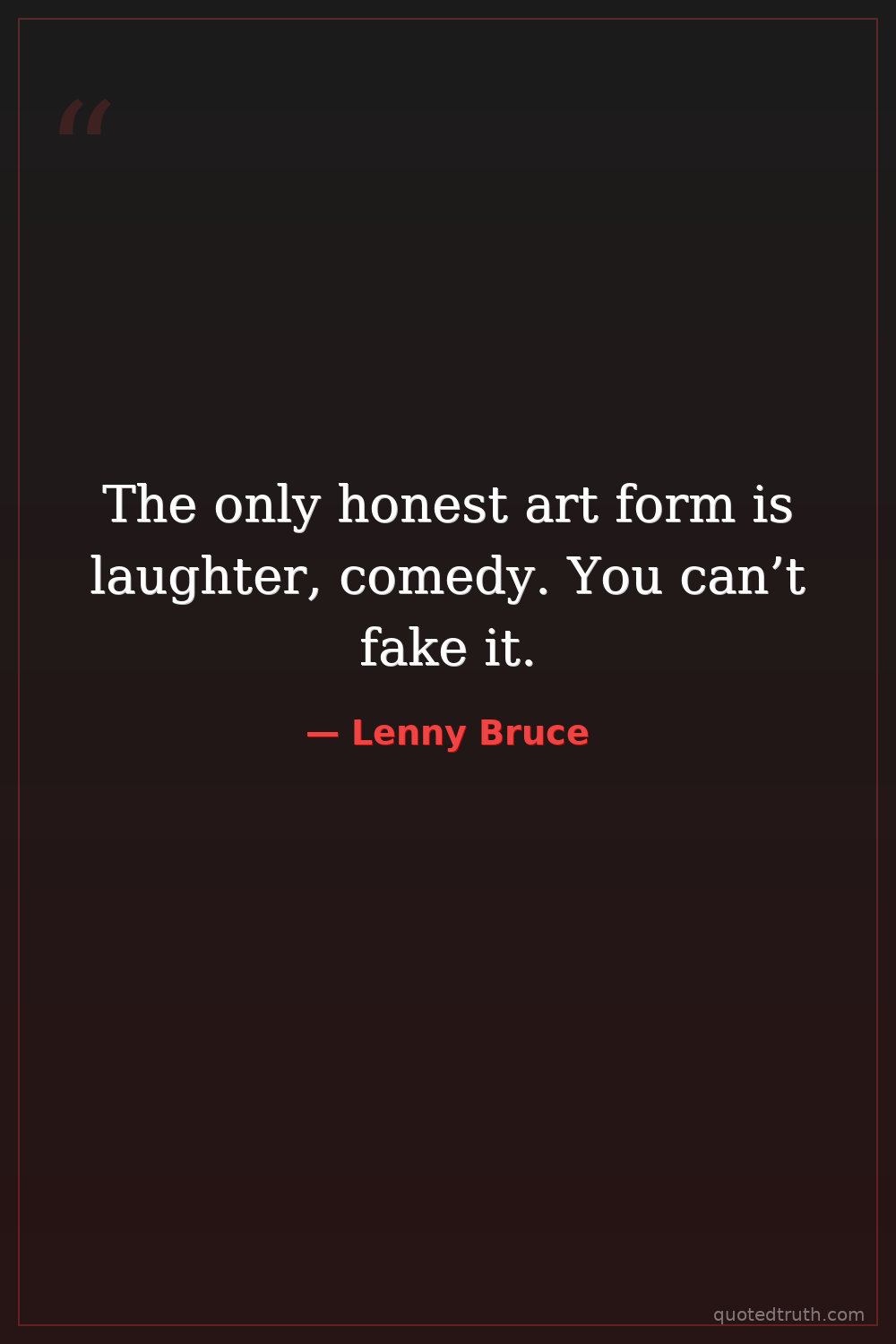 The only honest art form is laughter, comedy. You can’t fake it.