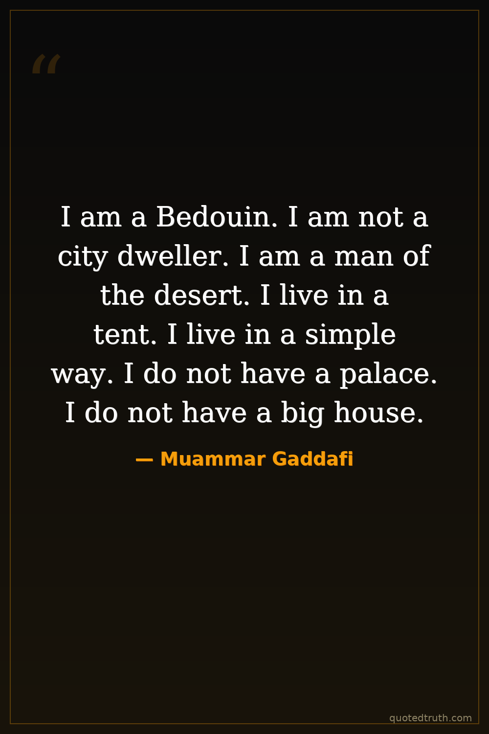 I am a Bedouin. I am not a city dweller. I am a man of the desert. I live in a tent. I live in a simple way. I do not have a palace. I do not have a big house.