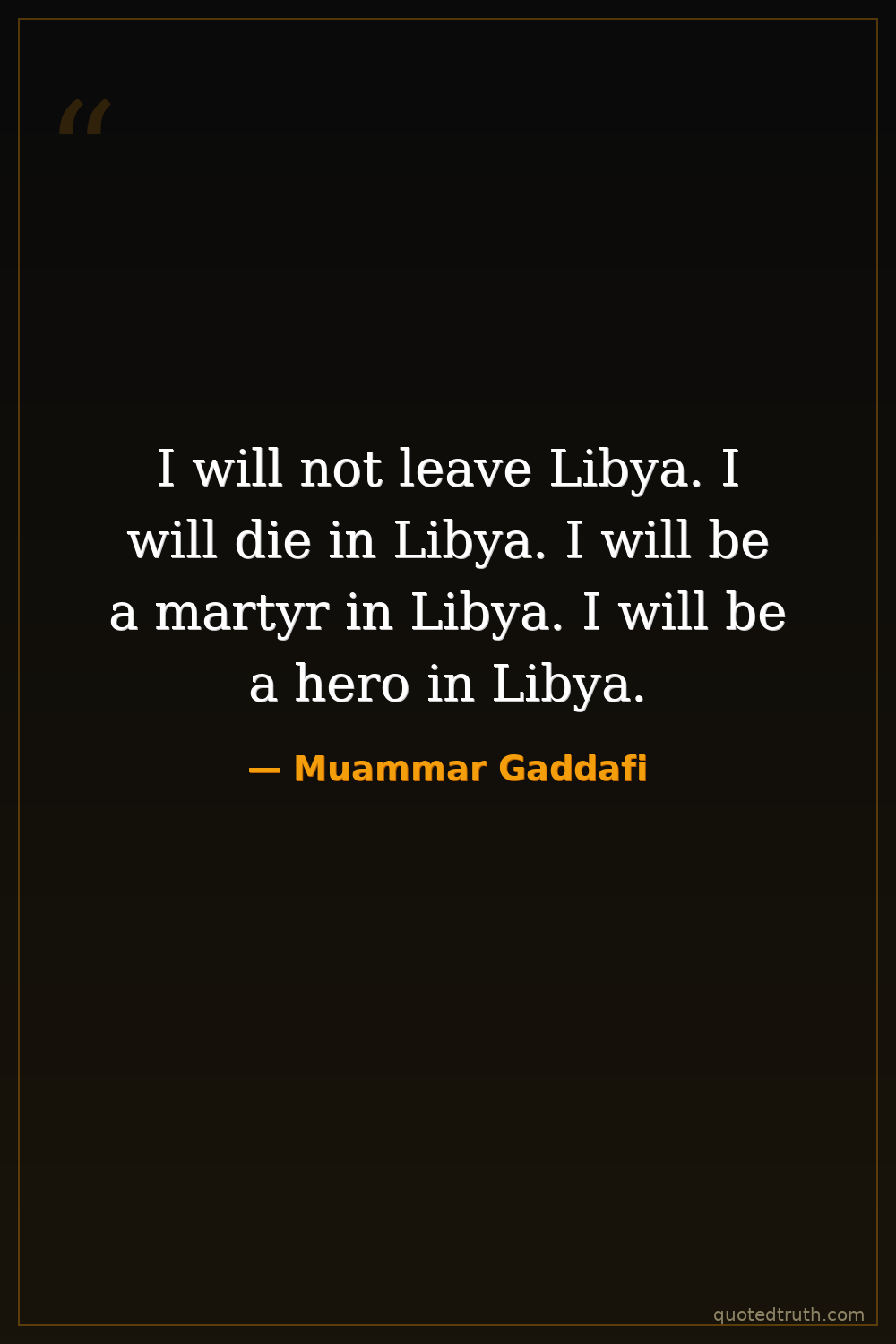 I will not leave Libya. I will die in Libya. I will be a martyr in Libya. I will be a hero in Libya.