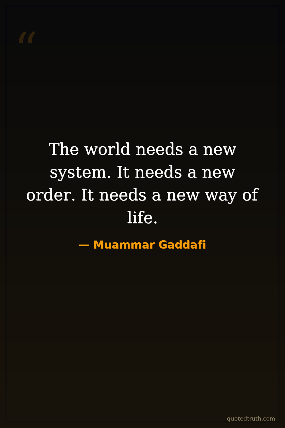 The world needs a new system. It needs a new order. It needs a new way of life.