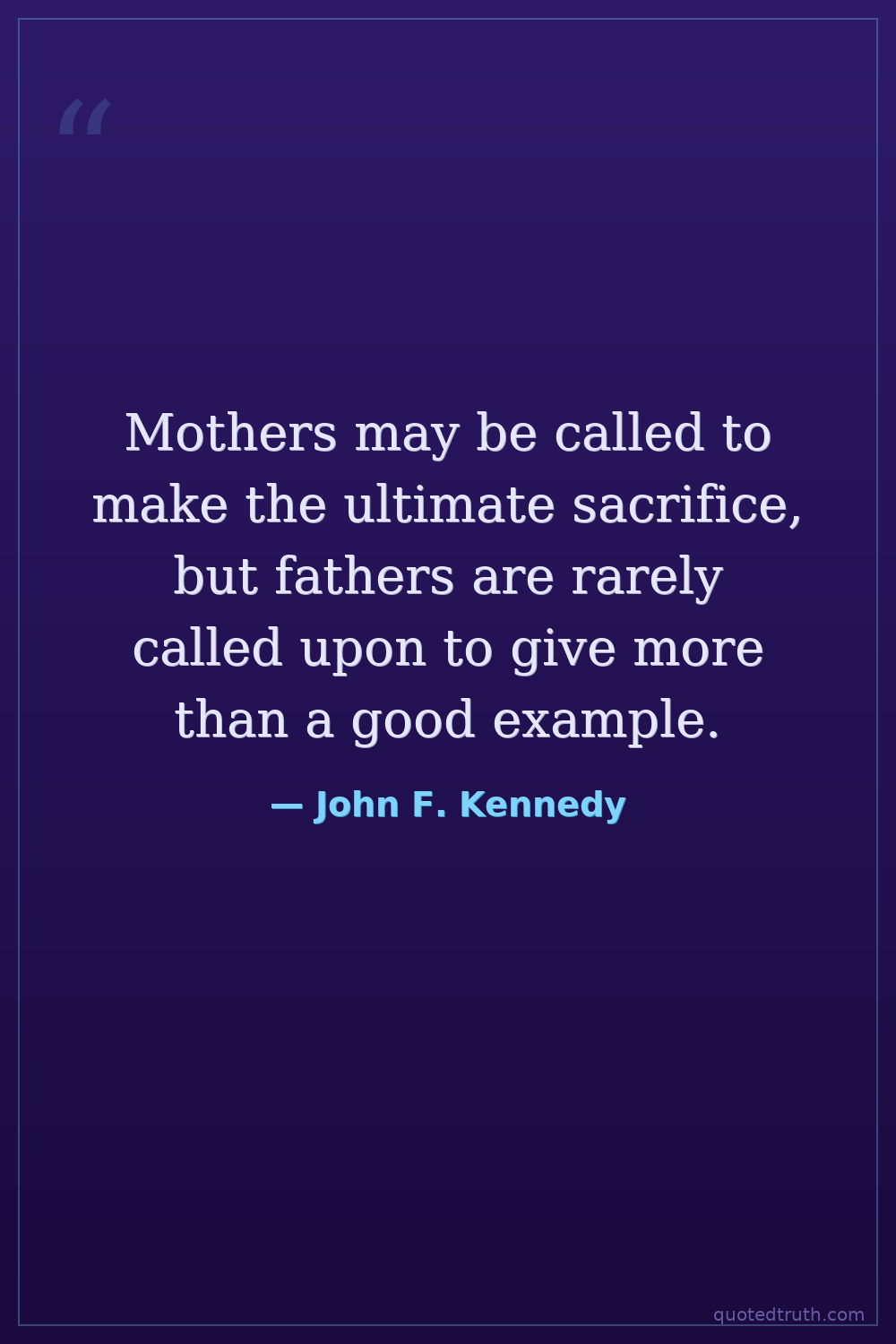 Mothers may be called to make the ultimate sacrifice, but fathers are rarely called upon to give more than a good example.