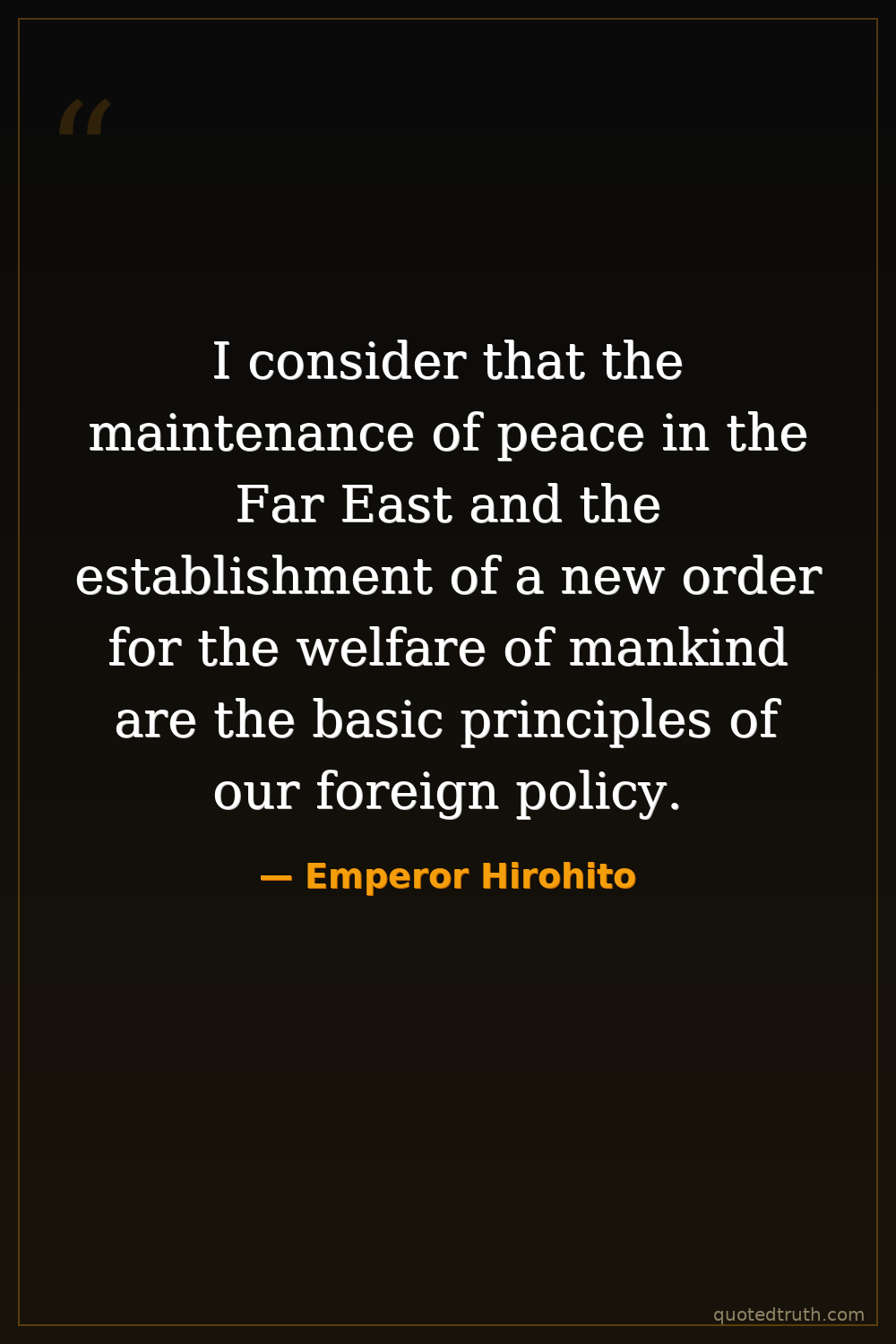 I consider that the maintenance of peace in the Far East and the establishment of a new order for the welfare of mankind are the basic principles of our foreign policy.
