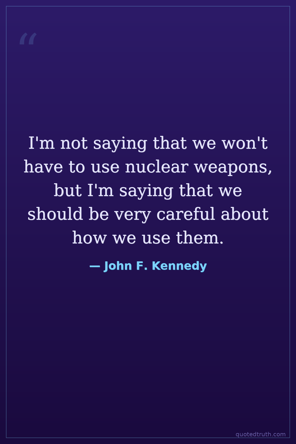 I'm not saying that we won't have to use nuclear weapons, but I'm saying that we should be very careful about how we use them.