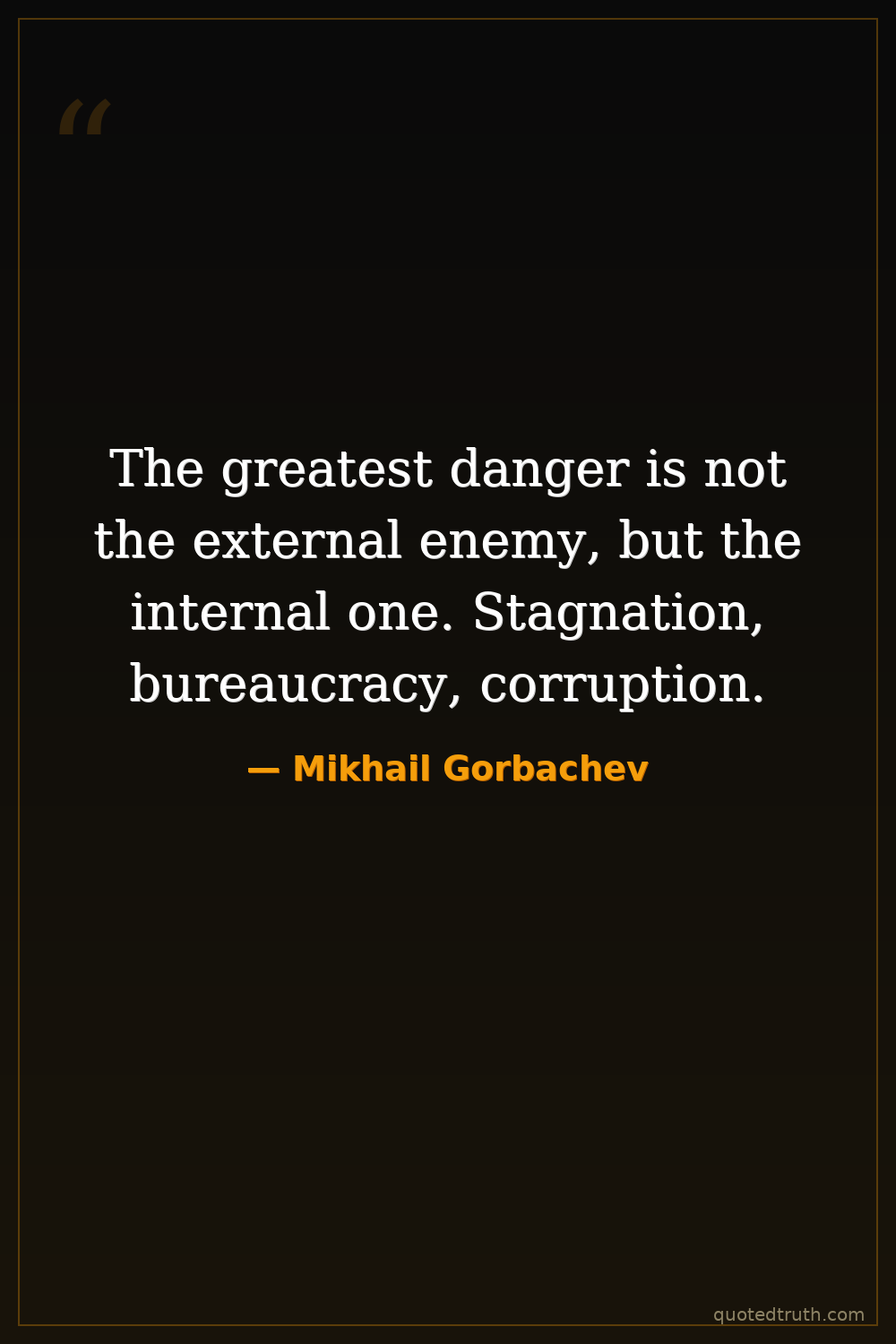 The greatest danger is not the external enemy, but the internal one. Stagnation, bureaucracy, corruption.