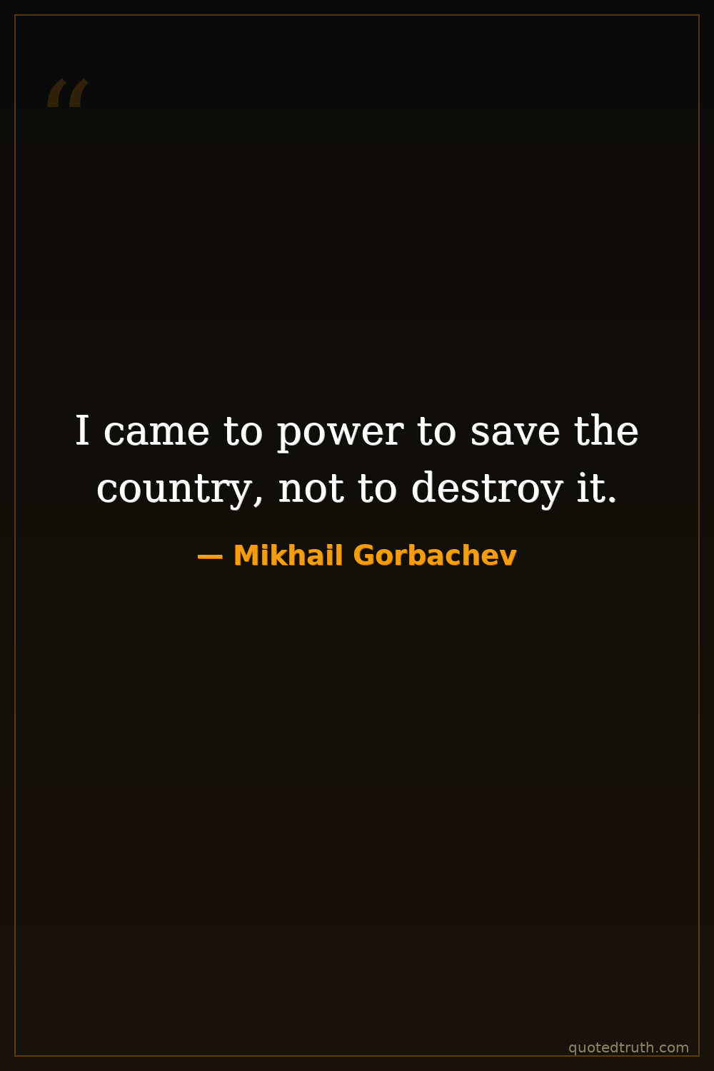 I came to power to save the country, not to destroy it.