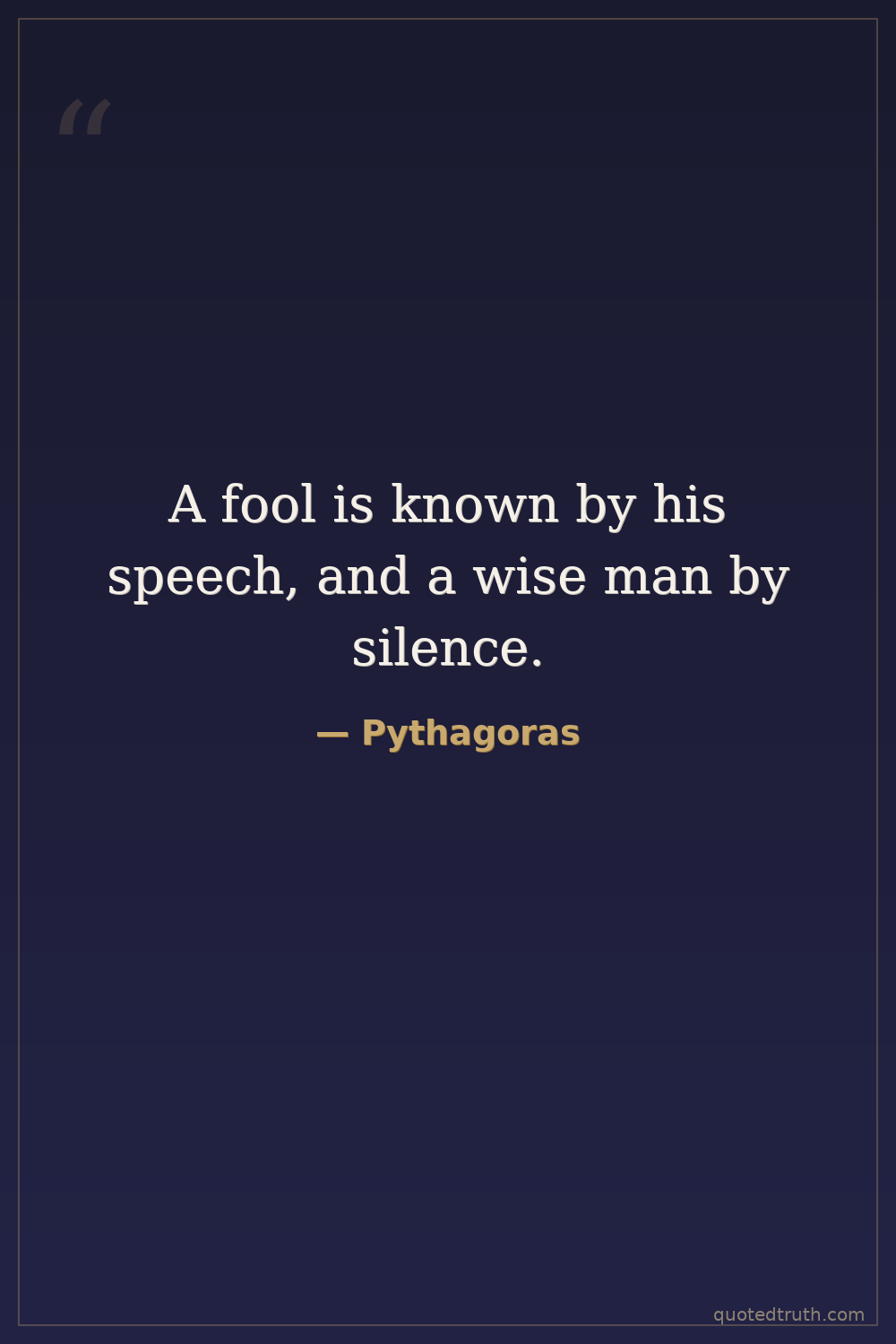 A fool is known by his speech, and a wise man by silence.