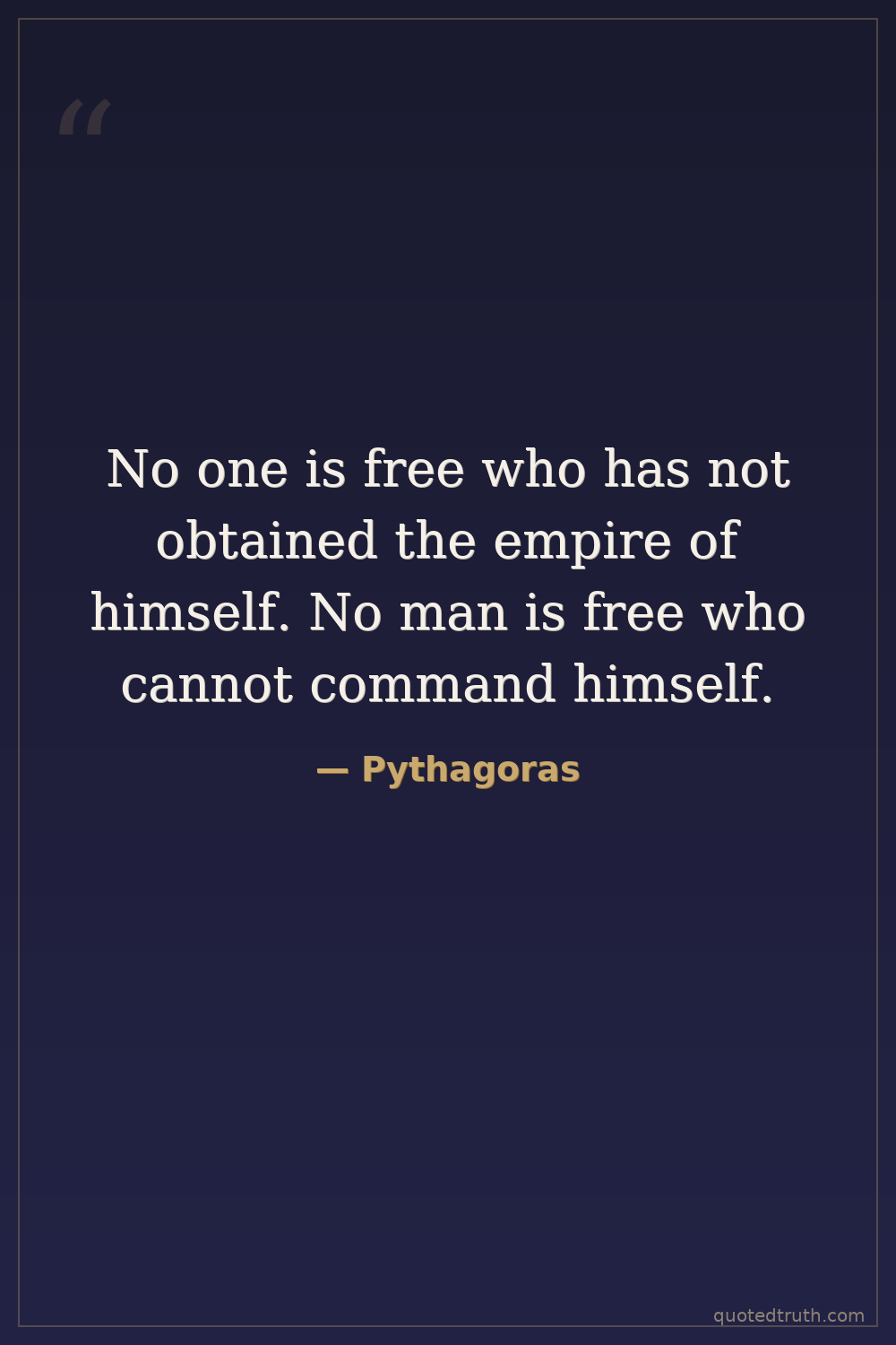 No one is free who has not obtained the empire of himself. No man is free who cannot command himself.