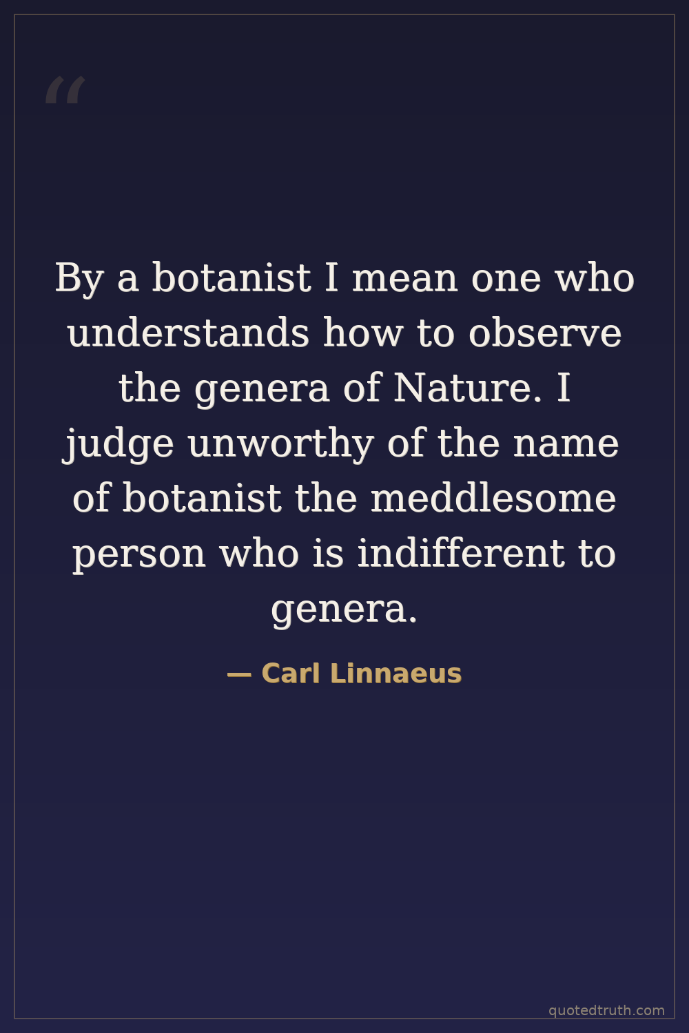 By a botanist I mean one who understands how to observe the genera of Nature. I judge unworthy of the name of botanist the meddlesome person who is indifferent to genera.