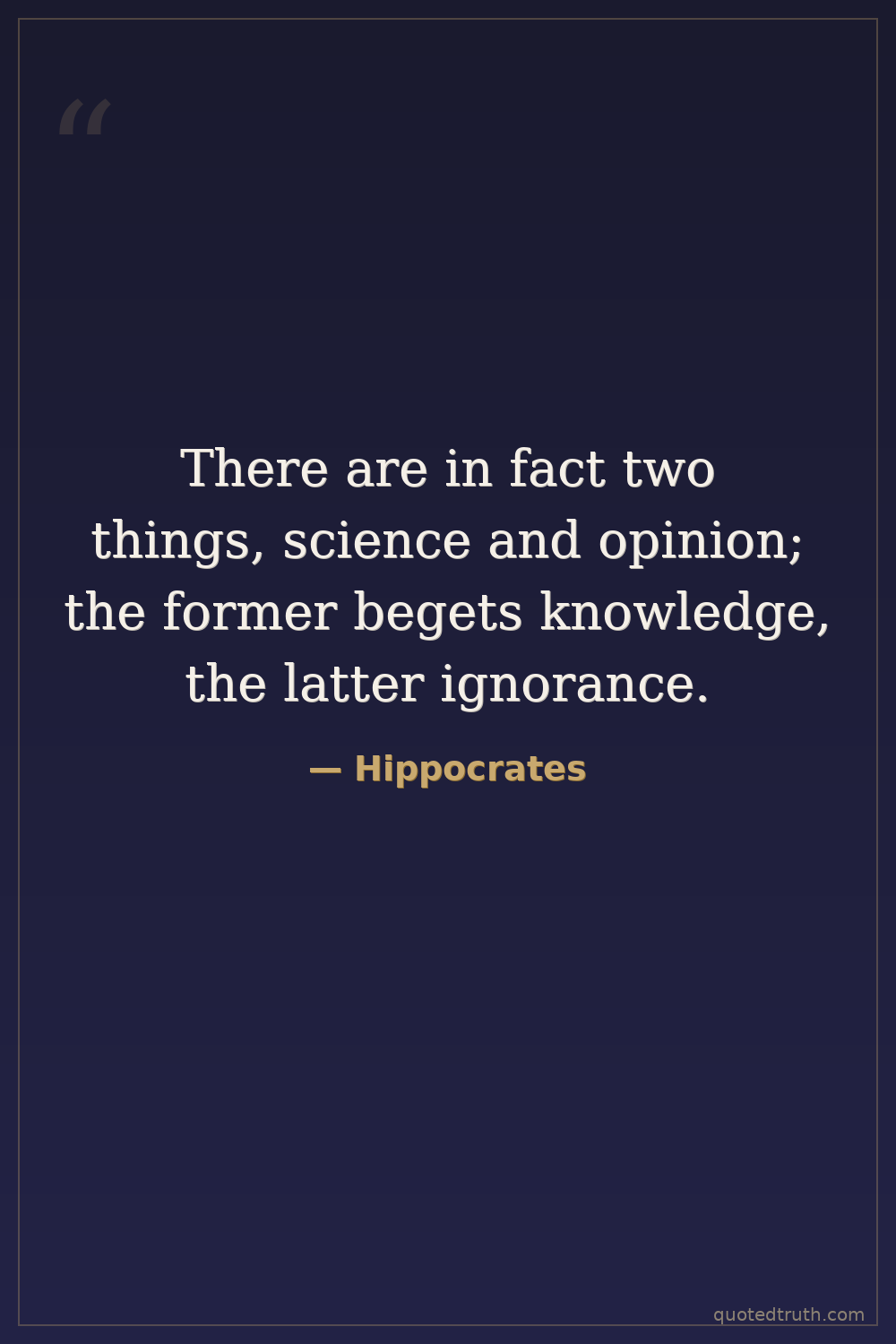 There are in fact two things, science and opinion; the former begets knowledge, the latter ignorance.
