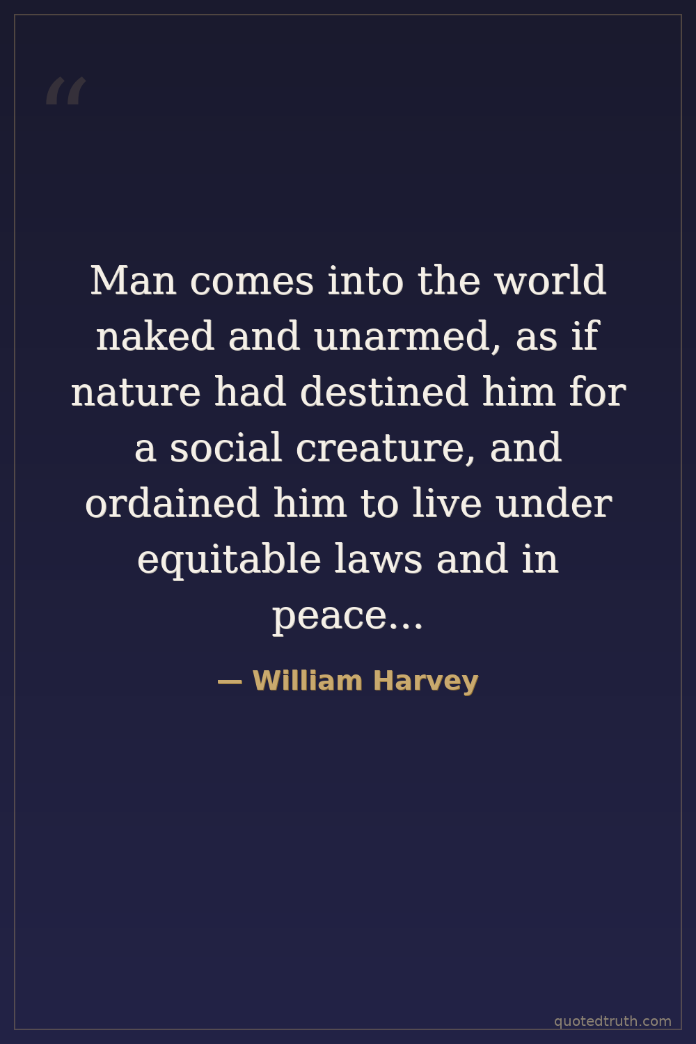 Man comes into the world naked and unarmed, as if nature had destined him for a social creature, and ordained him to live under equitable laws and in peace...
