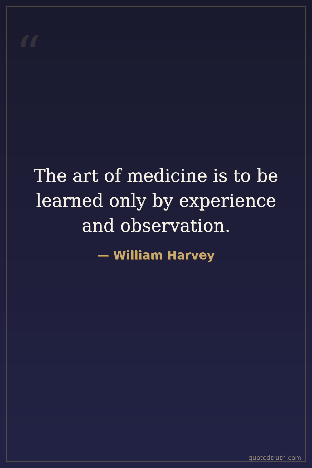 The art of medicine is to be learned only by experience and observation.