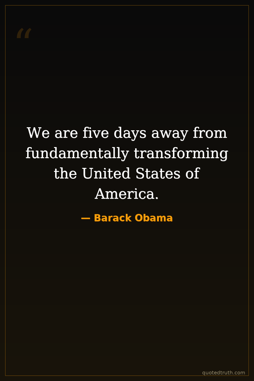 We are five days away from fundamentally transforming the United States of America.